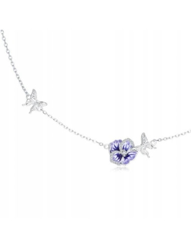 Naszyjnik ze srebra bratek liliowy motyle regulowany cyrkonie srebro 925