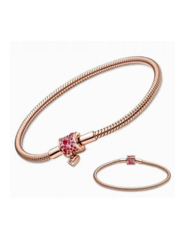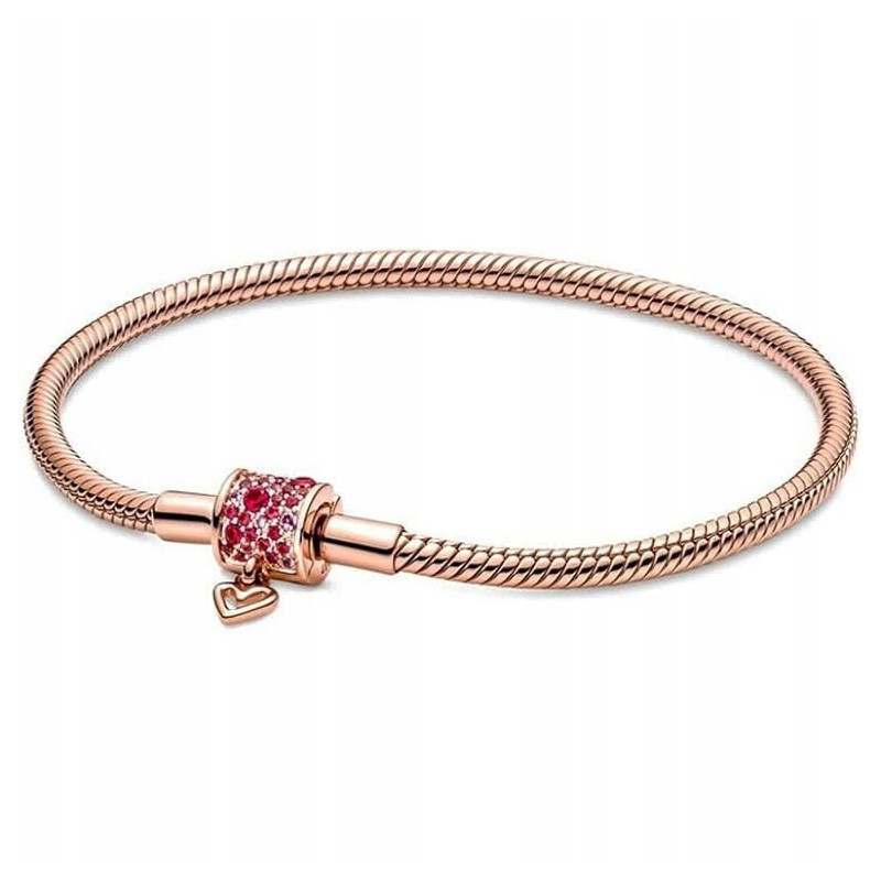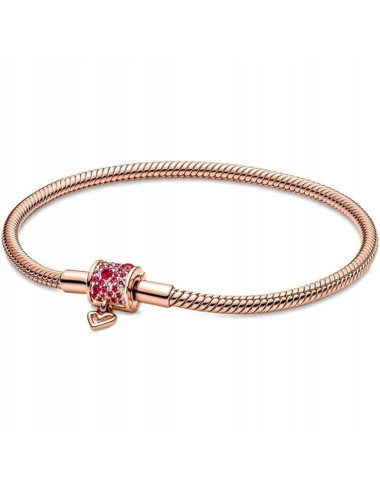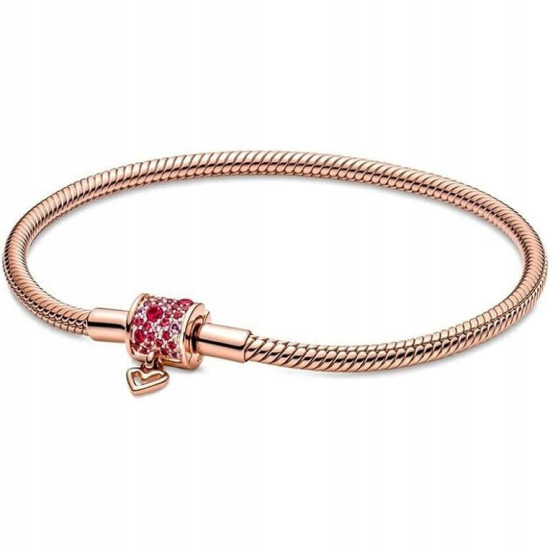 bransoletka modułowa charms wężyk 19cm pozłacana serce amarantowa
