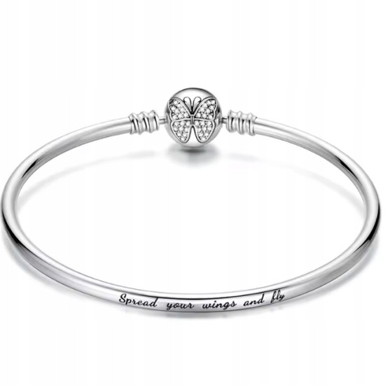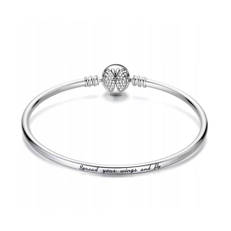 Bransoletka ze srebra z motylem i pieknym grawerem Spread your wings and fly (rozwiń skrzydła i leć).